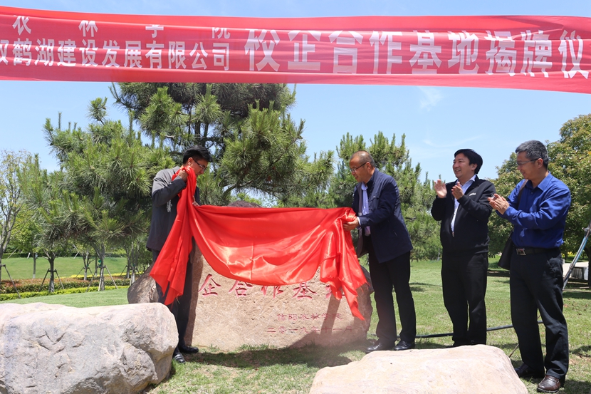 随后,赵一鹏与邢铁牛在双鹤湖中央公园共同为校企合作基地揭牌。