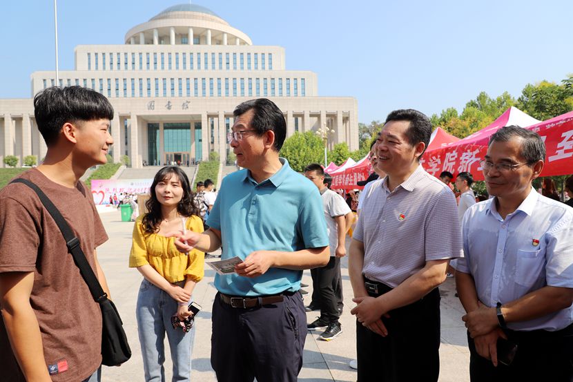 党委书记余作斌,校长郭长华,党委副书记刘光生、扶庆,副校长赵一鹏、王庆兵、文宗锋等校领导分别到火车站(高铁站)迎新接待站、新生报到现场、新生宿舍和学生餐厅,检查指导工作,查看报到流程,询问报到的相关情况,为有困难的新生和家长排忧解难,真诚地与他们交流沟通,并认真倾听他们对学校发展的良好意见和建议。