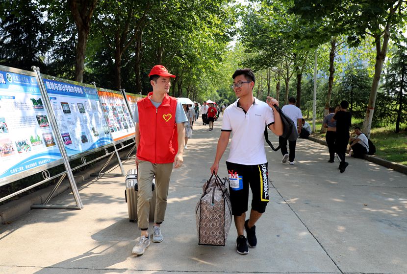 各学院、相关部门积极配合、互相支持、落实任务、责任到位。报到现场的各部门工作人员耐心负责,学生干部、志愿者和引导员随处可见,各接待点工作人员热情地帮助新生和家长尽快完成报到手续。家庭困难学生通过绿色通道现场办理入学手续,学生处印制、发放安全手册,制作宣传展板,并为建档立卡困难家庭的学生送上“爱心大礼包”;校团委组织开展志愿者服务,协助各部门各学院的迎新工作;财务处设立现场二维码缴费点,方便学生缴费;保卫处开展安全巡逻,指挥车辆通行,确保学生的人身和财产安全;后勤管理处提供免费热水,有序安排新生入住新宿舍;校医院在现场安排医护人员,防止意外发生;各学院召开新生家长座谈会,倾听他们的心声……整个迎新接待现场秩序井然,校广播站的同学们以直播的方式全程记录了迎新工作开展情况。