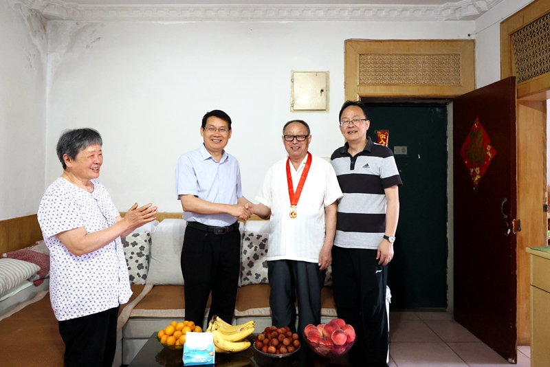 6月30日上午,在“七一建党节”来临之际,副校长赵聘,党委委员、组织部部长何涛走访慰问了“光荣在党50年”的老党员,为他们颁发“光荣在党50年”纪念章。离退休工作处负责同志参加了慰问。