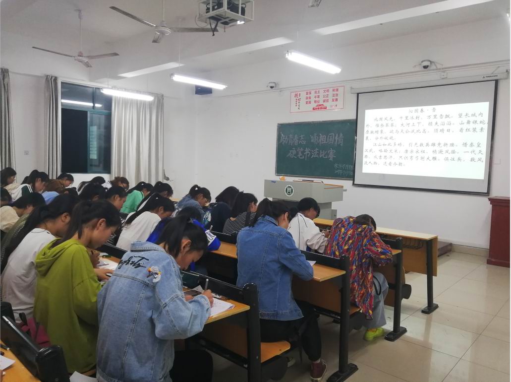 为了大力推广和规范使用国家通用语言文字,传承弘扬中华优秀传统文化,隆重庆祝中华人民共和国成立70周年,旅游管理学院在2019年9月19日晚7:00于二教114开展了以“励青春志,诵祖国情”为主题的硬笔书法比赛初赛活动,通过对18、19级参赛人员的组织选拔,我院共选出了17名优秀的学生,代表旅游管理学院参加全校决赛。