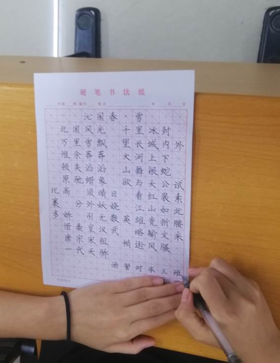 本次硬笔书法比赛的书写内容是毛泽东的《沁园春·雪》。比赛过程中,同学们满怀热情,聚精会神,一个个汉字或娟秀或刚劲,风格迥异,一笔一划都体现出同学们的认真与重视。一篇篇作品跃然于纸上,端正的字体,充分展示了旅游管理学院学子们的爱国主义情怀和奋发向上的精神面貌,提升了同学们的文化修养,展示了旅院风采。