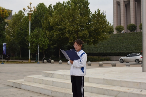 秋意微起,拂晓黎明。时逢新中国成立70周年之际,为进一步加强青年学生爱国主义思想教育,传承爱国主义传统,营造弘扬爱国主义精神的良好氛围,唱响礼赞新中国、奋进新时代的青春主旋律,宣传推广普通话,9月19日早上6时许,外国语学院在图书馆前汝宁广场举行以“我与祖国共奋进——国旗下的演讲”主题的团日活动。我院组织员、学工组组长吴宏、团总支书记范琼琼、学生干部代表以及全体2019级新生参加了本次主题团日活动。