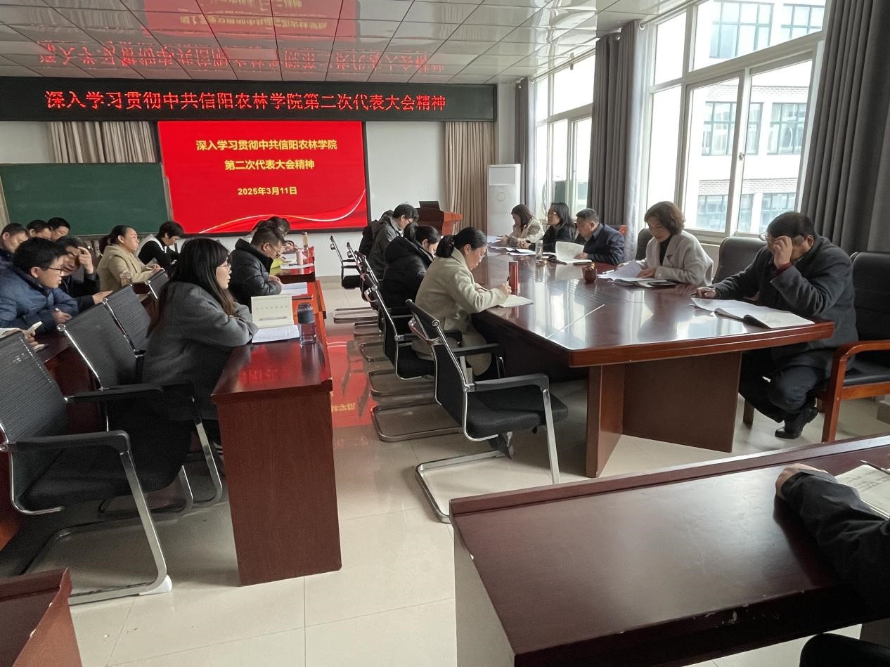 会议指出,全院师生要深刻领会学校第二次党代会的丰富内涵,对学校第一次党代会以来取得的主要成绩和在学校改革建设发展取得的宝贵经验倍加珍惜、长期坚持,并在实践中不断丰富和发展;要聚焦大会确立的学校事业发展的奋斗目标,聚焦未来五年学校事业发展的总体安排和重要举措,持之以恒推进全面从严治党向纵深发展,坚决落实新时代党的建设总要求,并结合学院实际,制定贯彻落实第二楶党代会精神实施方案,紧密围绕“12556”强基提质战略,落实立德树人根本任务,找准学科特色与学校战略的契合点,在党的建设、人才培养、科研攻关、产教融合、师资建设等方面深度发力,为学校建成特色鲜明的高水平应用型农林大学贡献学院力量。