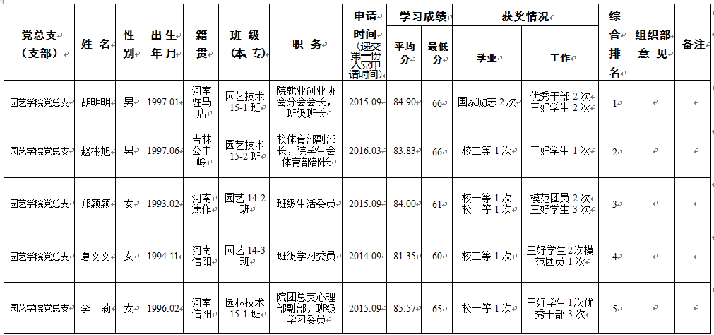 根据学校下发的党员发展计划,结合我院2017年秋冬学期党员培养计划,经院党组织培养考察、团组织推优、党内外评议和支委会审查研究,2017年秋冬学期拟推荐上报莫晓玉等13位同志为组织发展对象。为了增强发展党员工作的透明度,接受党内外群众的监督,确保发展新党员的质量,现将我院13位拟发展对象的详细情况公示如下: