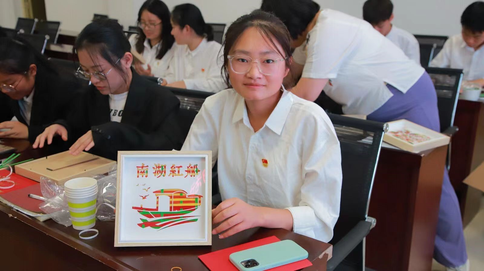最后,全体党员共同进行了"七一"主题竹编画制作。他们通过亲手编织,将党徽、党旗等元素融入竹编画中,既传承了传统文化,又增进了交流、学习,增强了党员凝聚力、认同感和归属感。