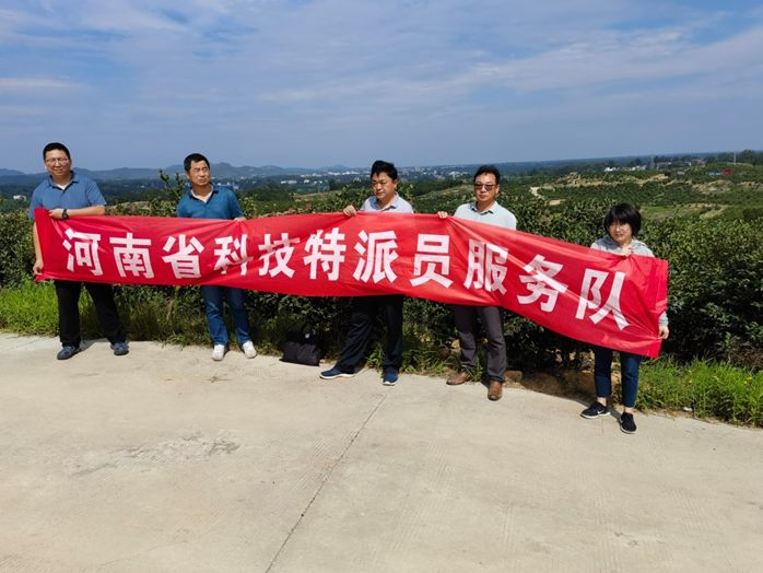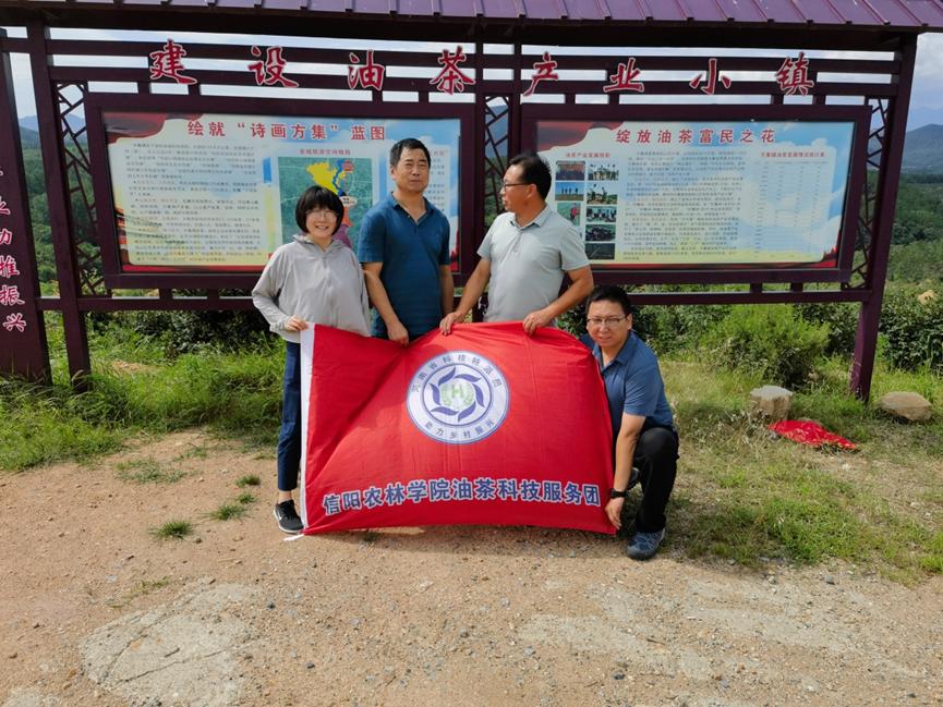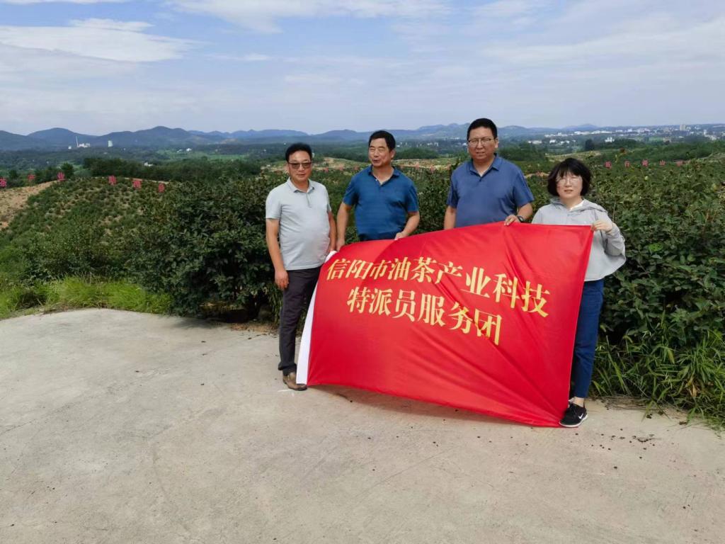 7月22日,beat365在线平台官网教师,河南省科技特派员张琰教授,带领beat365在线平台官网油茶科技服务团成员朱振飞博士及信阳市油茶产业科技特派员服务团成员倪天虹老师一行,冒着酷暑到固始县段集镇绿洲油茶种植专业合作社开展科技服务。