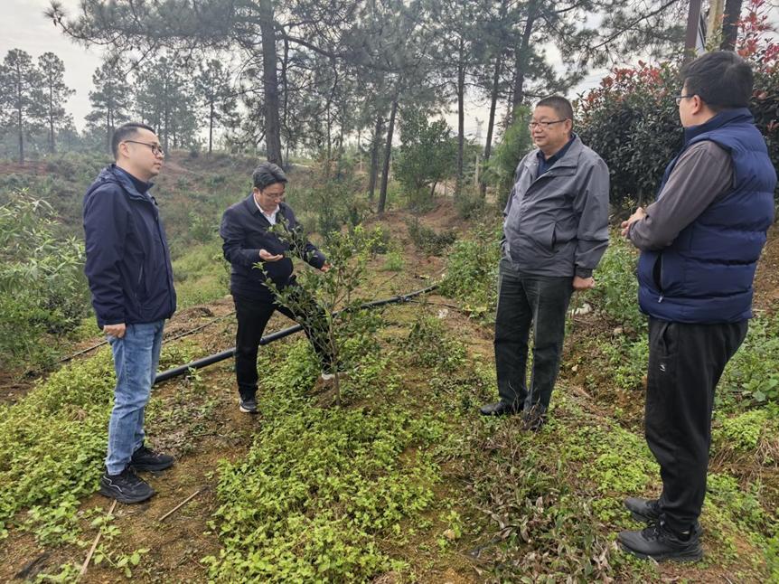 随后,服务团前往罗山县周党镇油茶种植示范基地,重点考察基地水肥一体化设施建设与运行情况。该基地通过滴灌系统实现精准施肥与节水灌溉,显著提升了油茶抗旱能力与果实品质。专家指出,应结合土壤养分监测数据,优化水肥配比,完善秋冬季养分管理方案,为来年稳产高产打下基础。