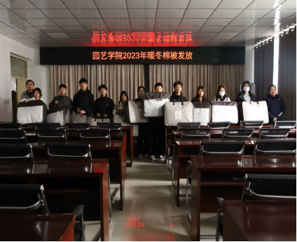园艺学院于2023年11月29日举办了一场深具意义的爱心棉被发放活动,旨在关心和帮助家庭经济特别困难的学生。由陈丽文书记和郝玉伟老师发放,在寒冷的冬季里,11名学生因此活动而收到了来自学校和社会的温暖。
