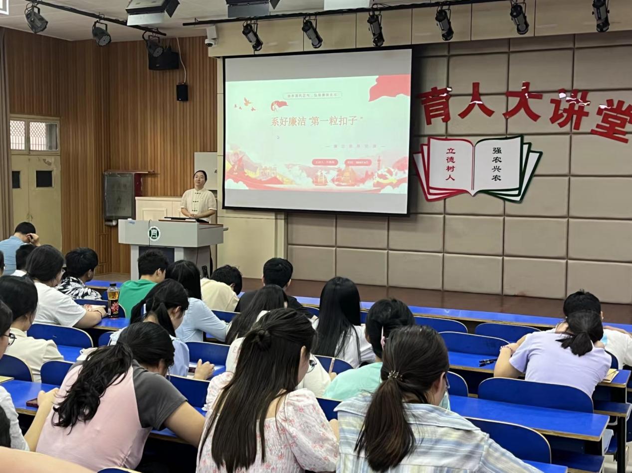 为进一步引导毕业生坚定理想信念,系好廉洁从业的“第一粒扣子”,2024年6月6日下午,园艺学院在一教E101教室召开2024届毕业生廉洁教育大会。会议由党总支副书记孙琳苒主讲,团总支书记王磊鹏主持,全体2024届毕业生参会。