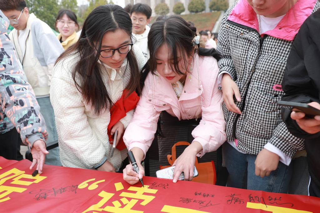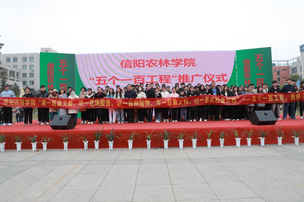 最后,全体参会领导、老师、同学们一起在beat365在线平台官网“读一百篇文献、听一百场报告、识别一百种植物、写一百篇文稿、行一百次社会实践——五个一百工程,我参与、我践行”条幅上签字合影留念。