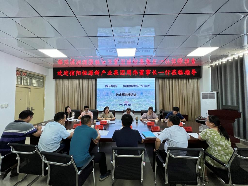 2022年8月12日,园艺学院邀请信阳恒源新产业集团经理周伟、信阳市中小企业公共服务平台主任刘丽娜一行6人到我院开展访企拓岗促就业座谈会,学院班子成员、部分科级干部参加了会议。