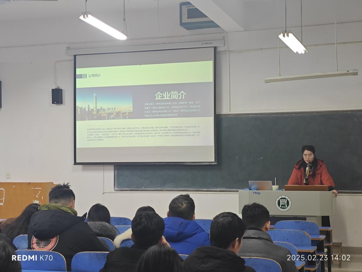 宣讲伊始,企业负责人通过一段精心制作的宣传视频,生动形象地展现了河南东亚又一新种业科技有限公司在种业产业链中的关键地位。从优质玉米种子的研发培育,到严格的生产加工流程,再到广泛的市场推广与销售服务,每一个环节都彰显着企业对品质的执着追求和对农业发展的责任担当,让师生们对企业有了一个直观且全面的初步了解。