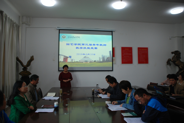 为进一步加强园艺学院师资队伍建设,培养青年教师爱岗敬业、严谨治学的态度,进一步激发广大青年教师更新教育理念和掌握现代教学方法的热情。2018年4月10日,春光明媚,草长莺飞,暖意融融。园艺学院第三届青年教师教学技能竞赛在会议室2A318顺利举行。园艺学院院长王亚莉、副院长范宏伟、何晖、各教研室主任、学生代表等为评委。观赏园艺教研室选派闵筱筱老师讲授《园艺园区规划》课程,植物与植物生理教研室选派王亚坤老师讲授《植物生理学》课程。两位教师就自己所授课程的教案、说课稿等进行了展示,并在规定15分钟时间内按照PPT课件内容进行了讲解。均表现出:普通话标准、讲授内容准确无误、时间把握较准等。