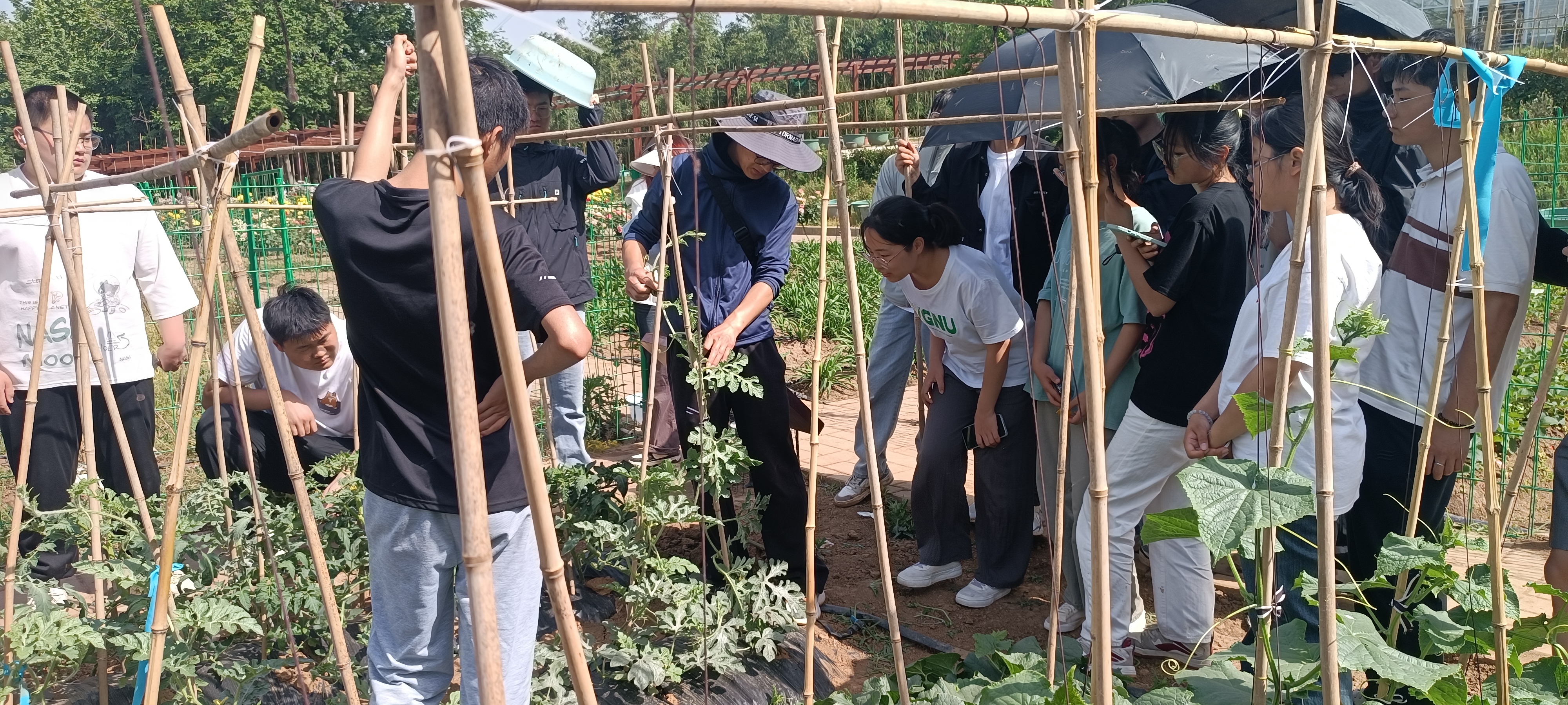 校内实习基地-馨园 刘增兵博士指导学生为西瓜吊蔓