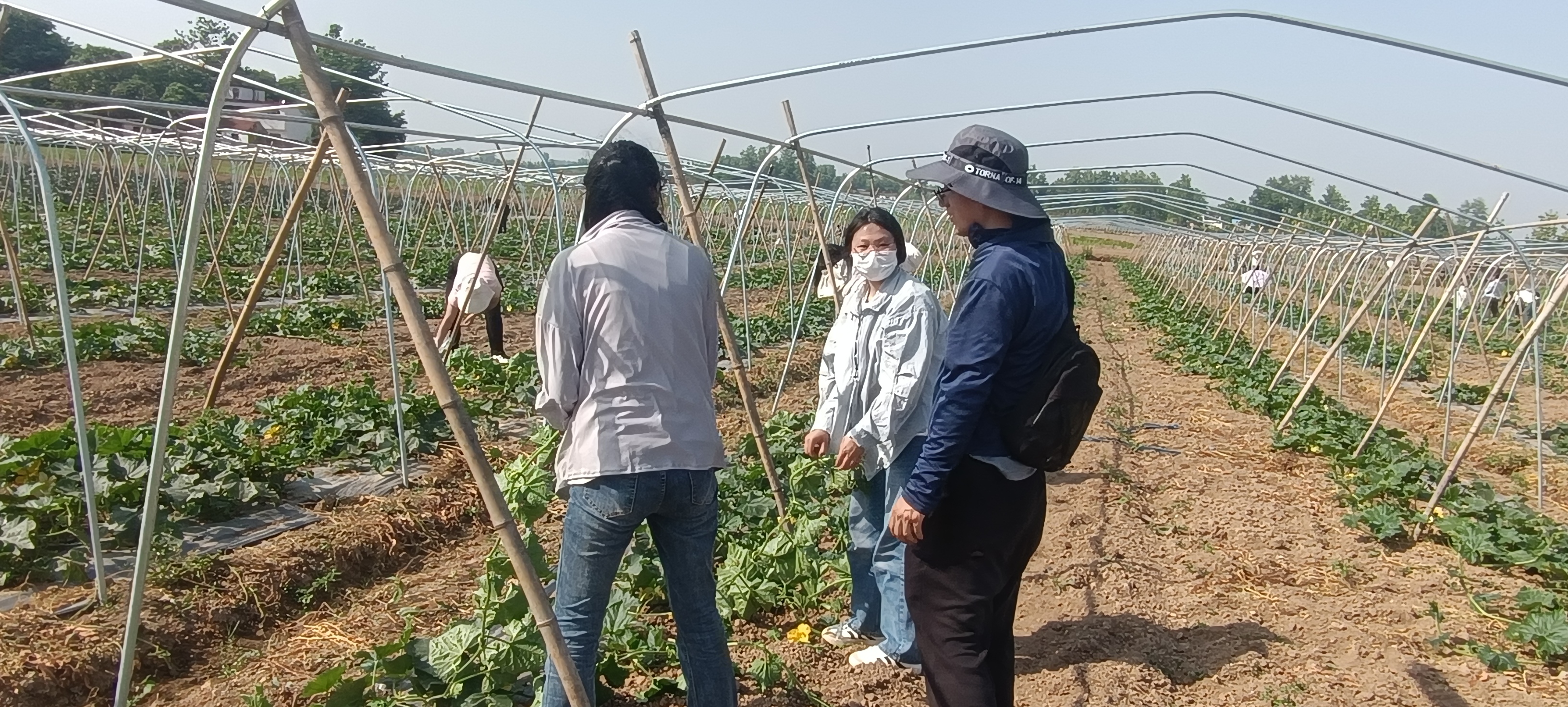学生在俊农发展农业专业合作社大棚进行冬瓜植株调整