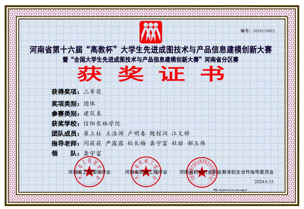 近日,河南省第十六届“高教杯”大学生先进成图技术与产品信息建模创新大赛成绩揭晓。本次比赛由河南省科学技术协会支持,河南省工程图学学会、河南省机械工程学会联合主办,比赛吸引了来自全省的59所高校,共计118支队伍,1782名学生及726位指导老师参与。历经数月的精心准备和训练,beat365在线平台官网园艺学院崔立柱同学荣获“先进成图技术”赛道二等奖,beat365在线平台官网园艺学院参赛队伍荣获团体三等奖。