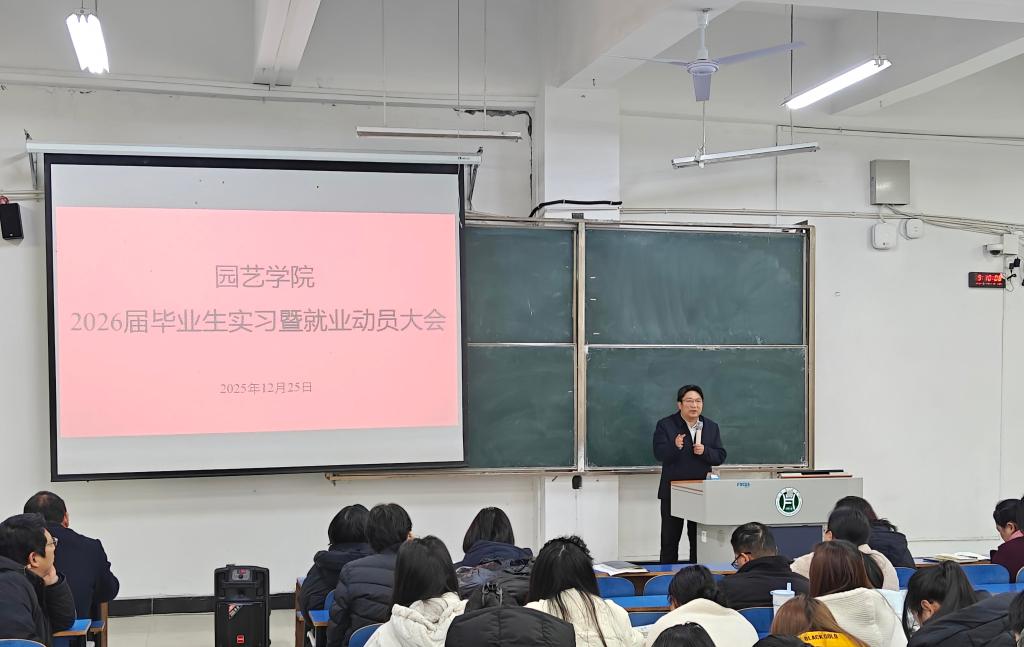 为扎实推进毕业生实习工作,引导2026届毕业生明确实习目标、树立安全意识、顺利完成从理论到实践的过渡,2025年12月25日周四上午,我院在1教E102教室召开了2026届毕业生实习动员大会。会议由学院分管教学的副院长申君主持,学院领导、相关教师、全体准毕业班辅导员及2026届全体毕业生共同参加了此次大会。