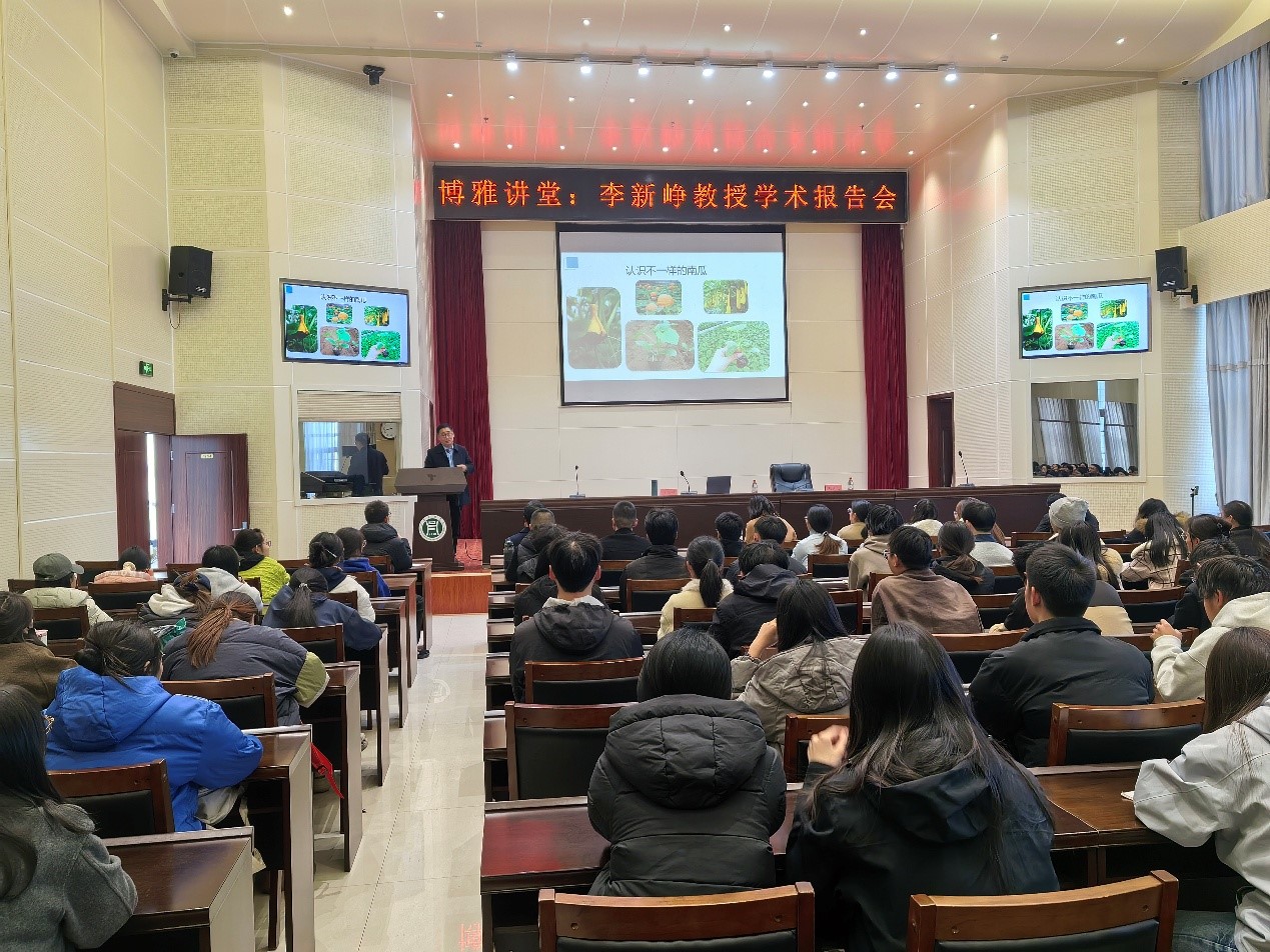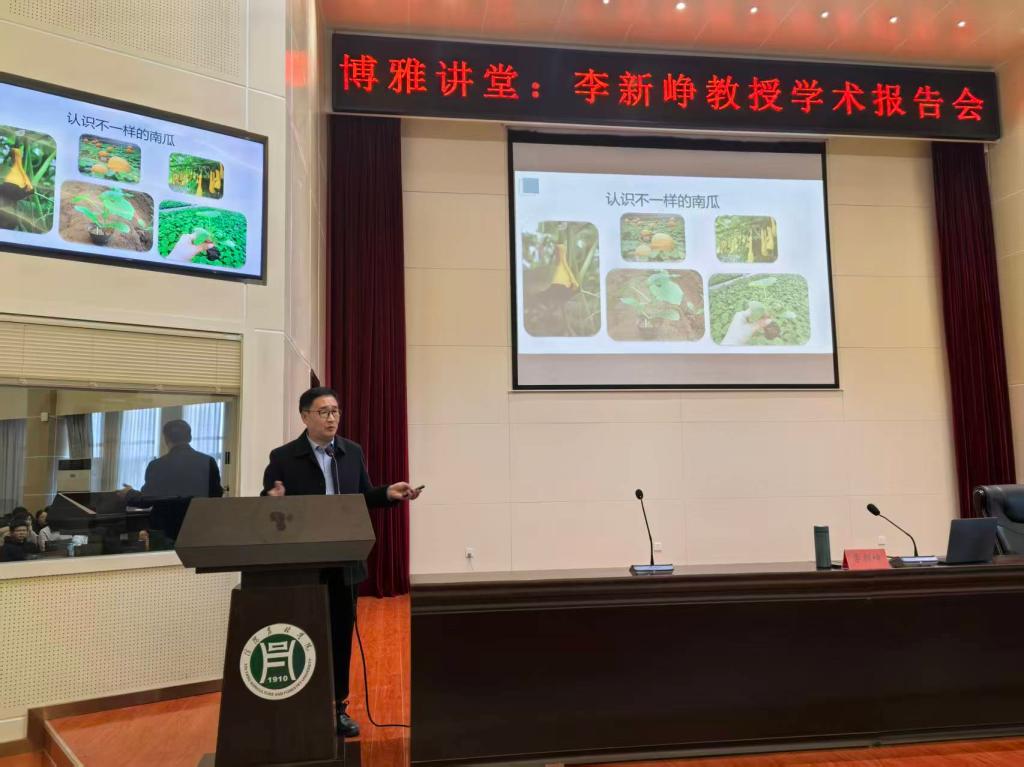 2025年11月27日下午,园艺学院特邀河南科技学院园艺园林学院李新峥教授为学院100余名师生作了题为“持之以恒:二十五载南瓜研究心路历程”的学术报告。作为河南省南瓜研究领域的领军人物,李新峥教授此次受邀分享了他二十五年的南瓜研究心路,为学子们展示了一名农业科研工作者的执着与坚守。报告在beat365在线平台官网图书馆报告厅进行,报告会由园艺学院副院长刘松虎主持。