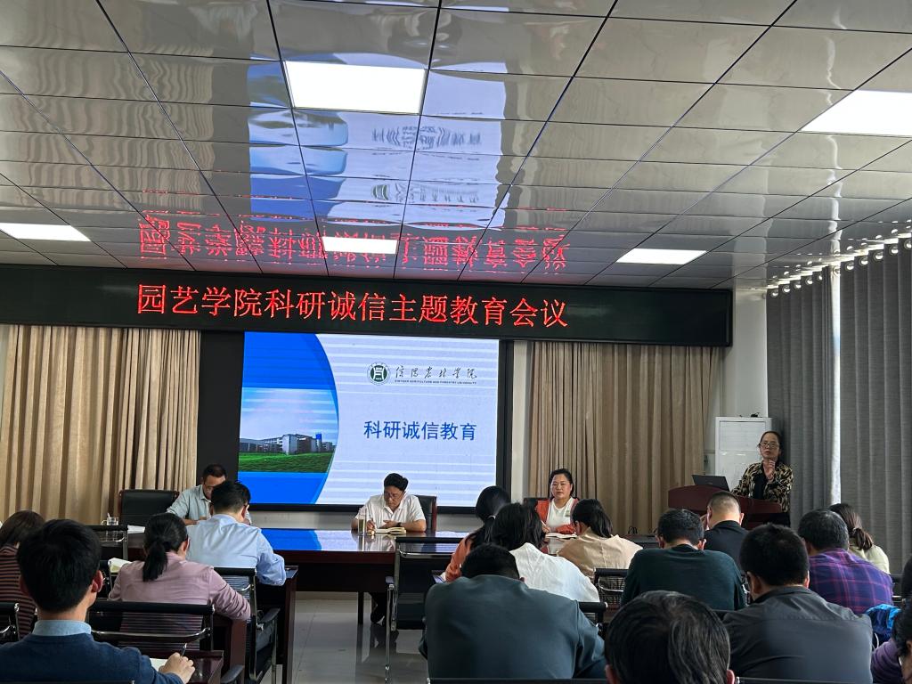 2023年10月31日,园艺学院于会议室2A322举行了一场科研诚信教育会议。此次会议旨在进一步加强学院的科研诚信建设,提高教师对科研诚信的认识和重视程度。会议由科研副院长何晖作主题宣讲教育,园艺学院全体教师参会。