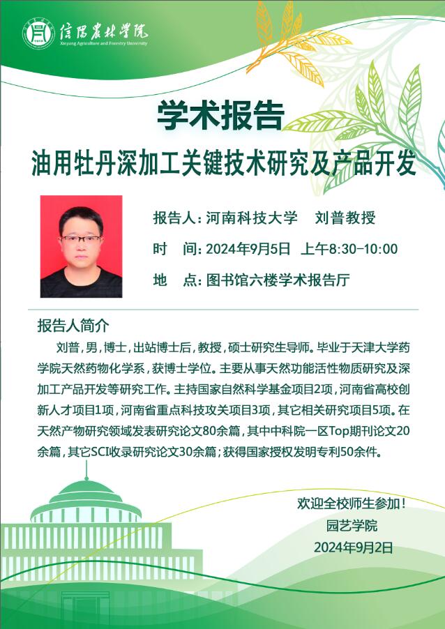 园艺学院“博雅讲堂”--油用牡丹深加工关键技术研究及产品开发