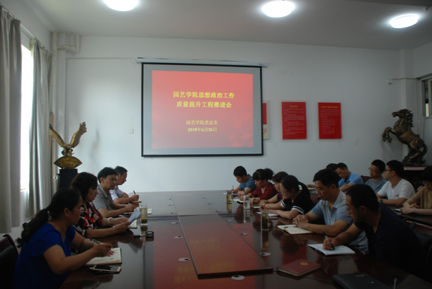 6月26日下午,园艺学院党总支组织全院教职工召开了高校思想政治工作质量提升工程推进会,首先冯世龙书记就学习中共教育部党组关于印发《高校思想政治工作质量提升工程实施纲要》的通知(教党〔2017〕62号)的有关内容提出了要求,王亚莉院长全文传达了实施纲要的内容,范宏伟副院长就有关课程育人质量提升体系、科研育人质量提升体系、实践育人质量提升体系谈了自己的体会和看法;各支部书记及辅导员和有关老师就文化育人质量提升体系、网络育人质量提升体系、心理育人质量提升体系、管理育人质量提升体系、服务育人质量提升体系、资助育人质量提升体系、组织育人质量提升体系等结合自己的工作谈了自己的体会和今后如何就落实纲要的有关精神谈了自己的看法。