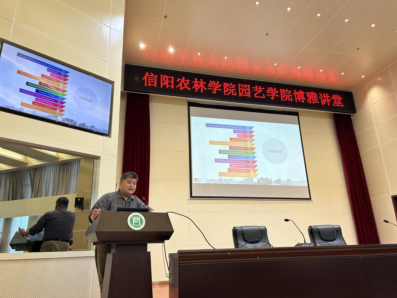 2023年10月17日下午,园艺学院在图书馆六楼报告厅举办了“博雅讲堂”学术报告会。会议邀请了马来西亚国立大学的Shazrul教授作报告,报告主题为“Garcinia作为功能性食品添加剂的潜力”。园艺学院240余名师生参加了报告会,会议由园艺学院院长龚守富主持。
