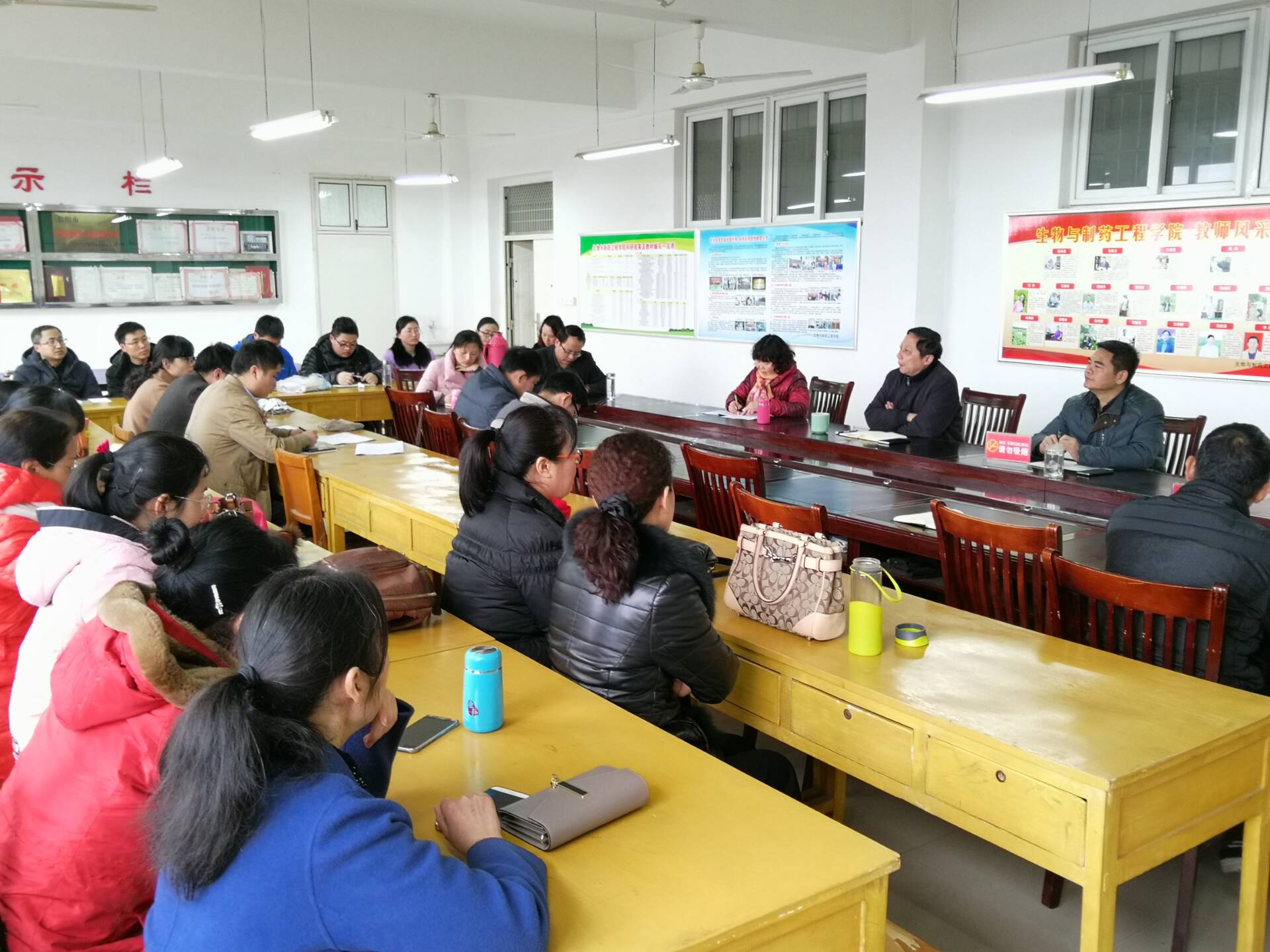 2018年3月3日上午9点,生物与制药工程学院在2C527召开新学期工作会议。生物与制药工程学院全体教职工参加此次会议。