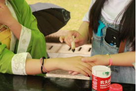 五月五,雄黄烧酒过端午。点滴雄黄酒,撒撒避蚊虫,在我院举办的中医文化节上,通过有序的组织,服务人员蘸着雄黄酒撒到同学们的手、胳膊上,服务人员同时向同学们介绍着雄黄酒的历史与发展等等相关知识,说明在现代医学研究发现雄黄具有一定的毒性,所以不能像古人一样去饮用;同学们都积极的去排队撒雄黄酒,而且撒过雄黄酒的同学暂时可以不用担心蚊虫的叮咬了哦!