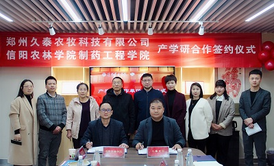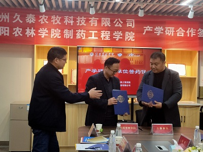 3月18日上午,制药工程学院-郑州久泰农牧科技有限公司产学研合作实践教学基地签约暨揭牌仪式在郑州科技工业园顺利举行。beat365在线平台官网制药工程学院院长段鸿斌,校国资处副处长左春生,省科技服务团团长陈琼教授,专业教师朱乃亮、汪清美,以及郑州久泰农牧科技有限公司创始人徐自涛,总经理冯帆和相关企业领导参加了签约暨揭牌仪式。仪式由马逢缘主持。