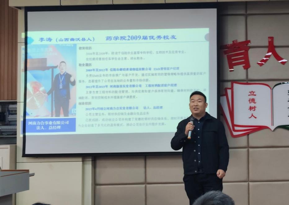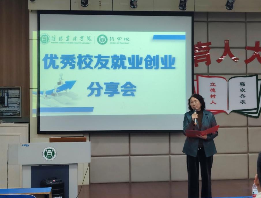 为了向在校学子传递创业思路与精神力量,药学院于11月21日下午在一教E101教室举办优秀校友就业创业分享会,本次分享会邀请多位优秀校友返校,与在校学子分享职业发展经验。药学院副院长张艳玲、校友代表郭俊飞、李涛、翟俊蕾、于伟伟、齐会敏、龚志强及学院教师代表出席活动,药学院相关年级学生参与此次分享。