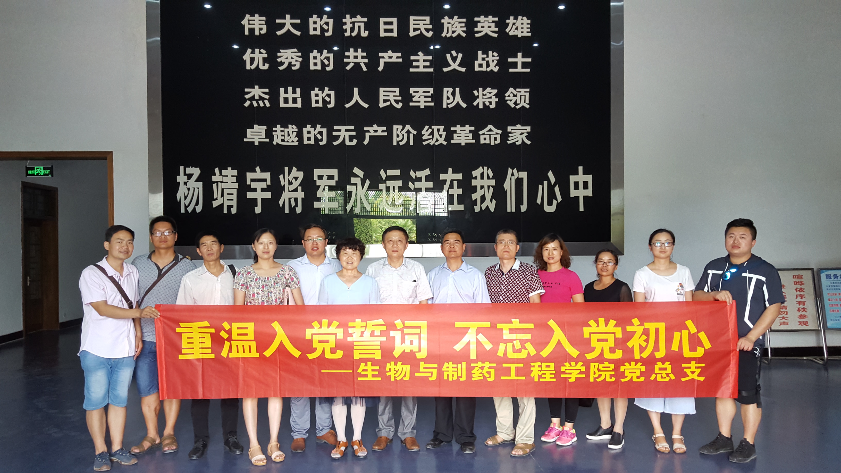 在建党96周年之际,为推进“两学一做”学习教育常态化、制度化,丰富学习教育活动内容,进一步坚定党员干部的理想信念和提升党性修养,7月5日,生物与制药工程学院组织教师党员赴河南省驻马店市驿城区古城乡李湾村杨靖宇将军纪念馆开展“重温入党誓词,不忘入党初心”红色教育活动。