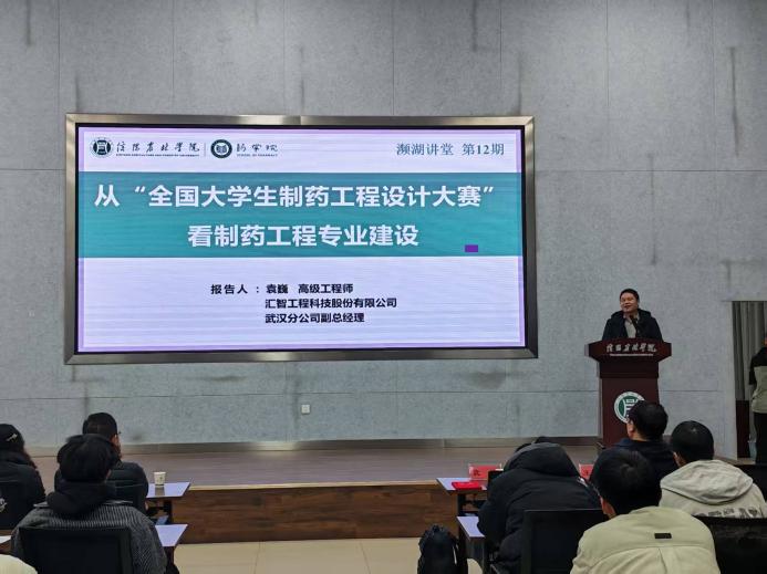 为深化制药工程专业教学改革,帮助学子明确职业发展方向,我院近日成功举办“濒湖讲堂”系列学术讲座。重庆太极实业(集团)股份有限公司副总经理郑洪涛先生、汇智工程科技股份有限公司武汉分公司副总经理袁巍先生两位高级工程师受邀主讲,我院数百名师生参与,收获颇丰。