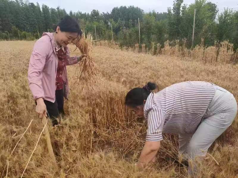 在息县湾柳树村,服务团队对小麦进行了测产。由于近期干旱,小麦已经成熟且完全干燥,但息县远古生态农业科技有限公司总经理王春玲为了让我们科技人员掌握第一手资料,预留了2块小麦没有收割,一块是采用酵素和有机肥、不施除草剂的生态种植小麦,一块是传统种植的小麦。大家从麦田杂草及小麦长势上判断,生态种植小麦田地几乎没有杂草,麦杆粗壮,麦粒饱满,传统种植麦田有大量杂草,且土地板结,麦粒干瘪,总体判断种植的小麦产量和质量都优于传统种植方法,这和目前我们中药材团队推行的中药材生态种植具有异曲同工之处。