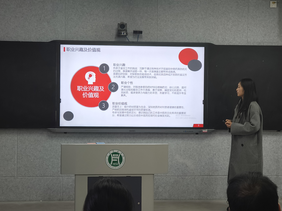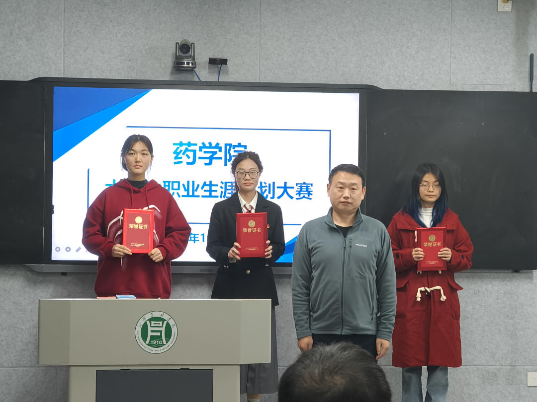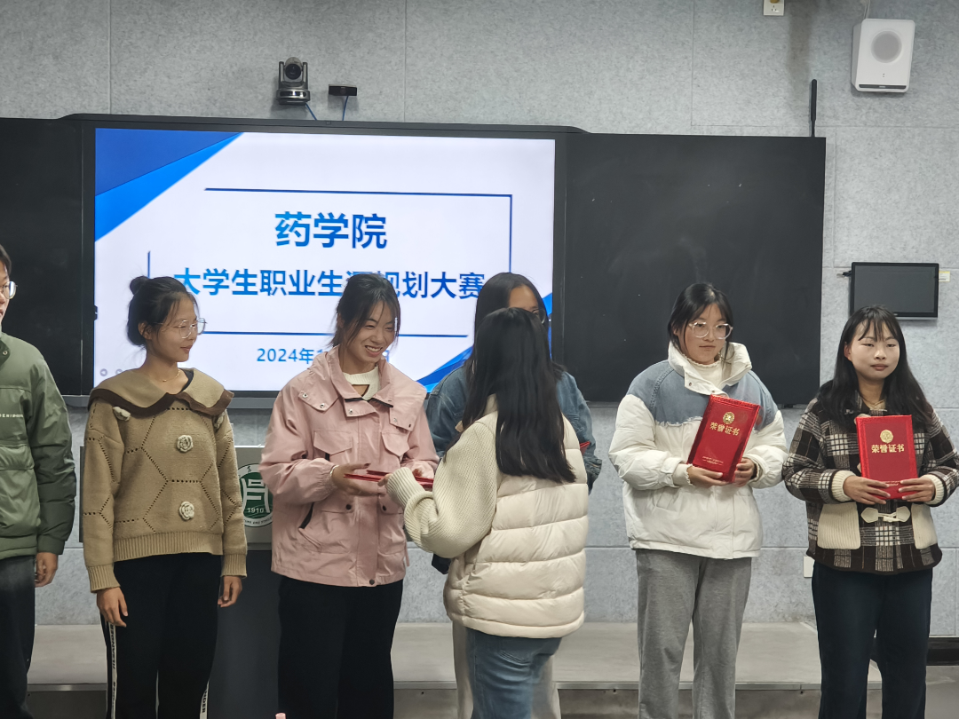 大赛还制定了严谨的打分规则,并设置了丰富的奖项。成长赛道选手分数每5人一公布,待前六位参赛选手展示结束后,公布前五名选手的分数。就业赛道由评委集中打分后公布所有参赛选手分数。成长赛道设有一等奖、二等奖和三等奖;就业赛道设有一等奖。两个赛道的一等奖将推荐参加学校复赛。 经过激烈的角逐,各个奖项尘埃落定。主持人公布了药学院2024年大学生职业生涯规划大赛成长赛道和就业赛道的获奖名单,并由评委老师为获奖选手颁奖。