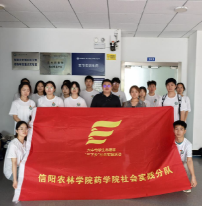 27日上午,暑期实践团一行人到达了信阳市朗睿医药科技有限公司,参观实验室与生产车间,实地了解药品生产流程和技术人员交流学习。此次实践过程不仅拓宽了成员们的科技视野,也为将专业知识与实践有机融合,使同学们深刻思考未来的就业方向,为同学们在相关领域的学习与实践提供了宝贵的经验。