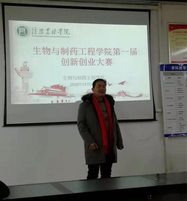 为了进一步做好创新创业工作,为我院本科教学评估增光添彩,12月17日,生物与制药工程学院在院办会议室隆重举行第一届创新创业大赛。大赛由学院创新创业专员李尽哲副教授主持,学院分管创新创业副院长、河南省教学名师、河南省食用菌专家王德芝教授、河南省中药材专家陈琼教授、生物制药教研室主任王伟老师、学院团总支书记陈颐辉老师担任评委。